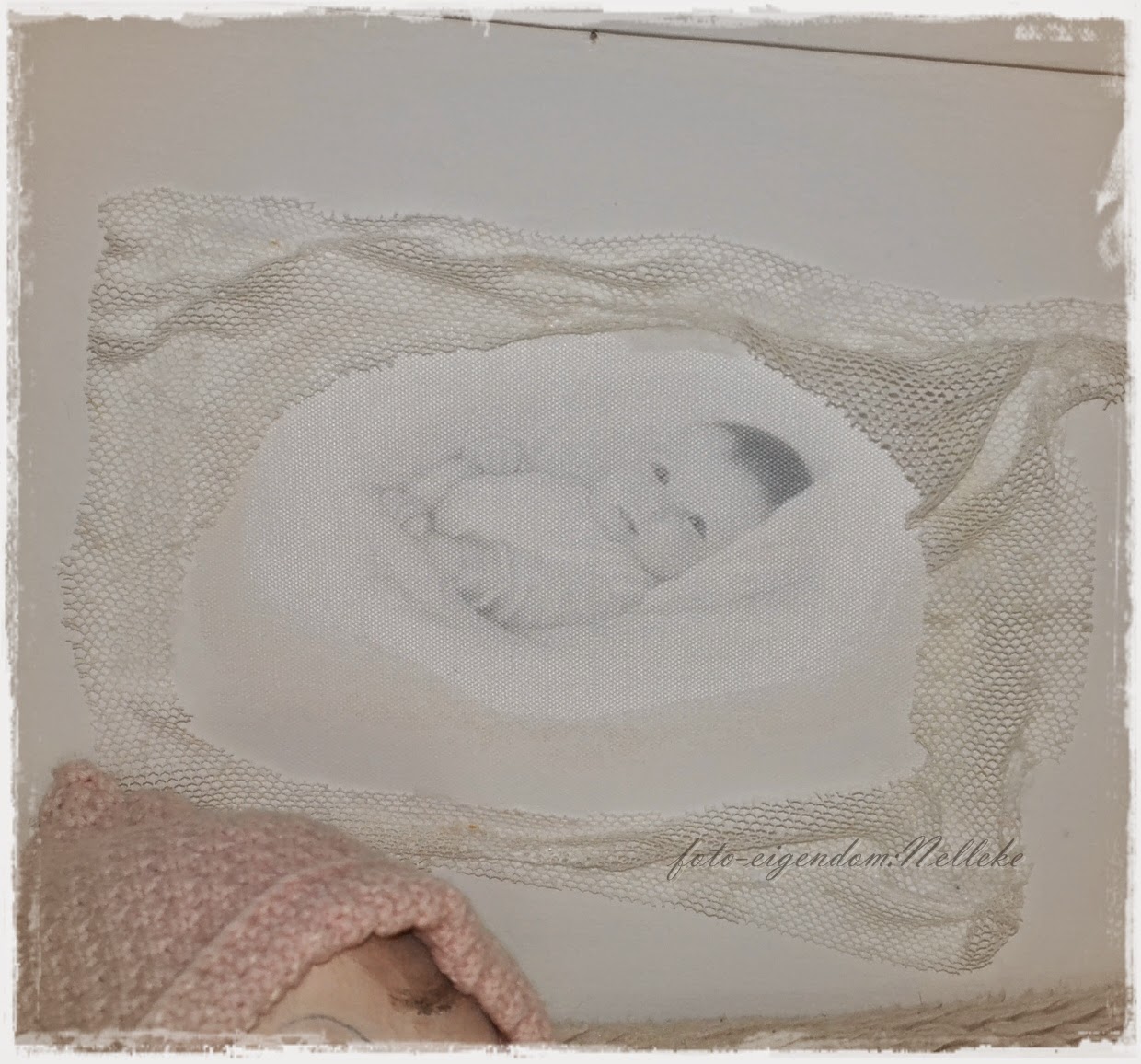 Çok seçilmese de içi boş kılıf çerçeve olarak kullanılıp bebeklik resmi içine konmuş.